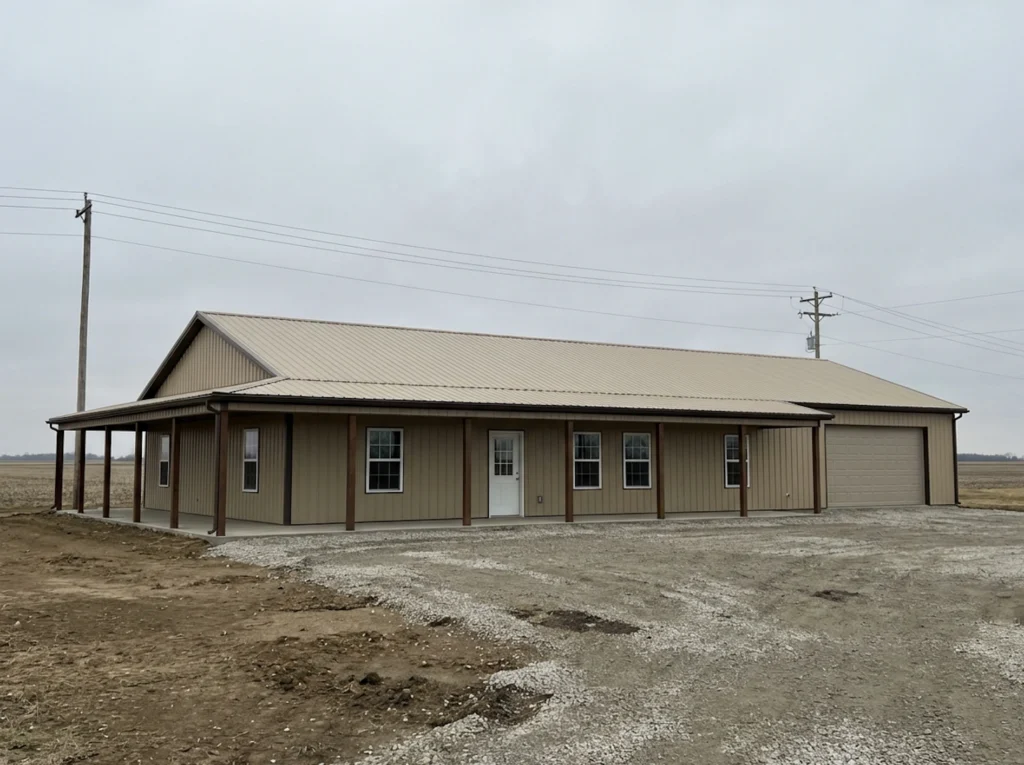 A barndominium gives you the strength and efficiency of a steel-frame pole building with the comfort and style of a custom home. Lower cost per square foot, faster build times, and virtually unlimited floor plan options.
