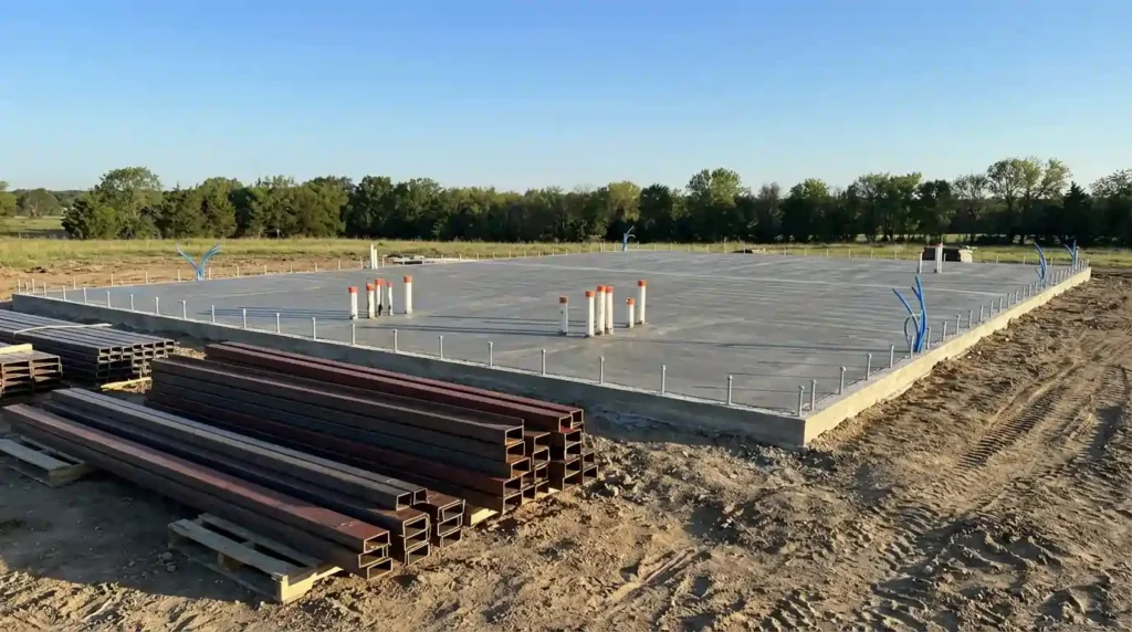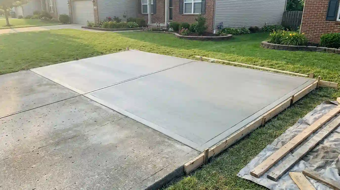 We handle excavation, grading, compacted base material, and form building. Rebar and wire mesh are placed per engineering specs.